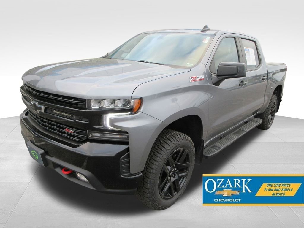 New Tires, Silverado 1500 LT Trail Boss, 4D Crew Cab, EcoTec3 5.3L V8, 10-Speed Automatic, 4WD, Satin Steel Metallic, Black Cloth, 10-Way Power Driver Seat w/Lumbar, Apple CarPlay/Android Auto, Heated Driver & Front Outboard Passenger Seats, Hitch Guidance, Remote Vehicle Starter System, Trailering Package. Trailering Package (Hitch Guidance), Cloth Rear Seat w/Storage Package, Convenience Package w/Buckets Seats (10-Way Power Driver Seat w/Lumbar, Heated Driver & Front Outboard Passenger Seats, Dual-Zone Automatic Climate Control, Floor Mounted Center Console, Heated Steering Wheel, and Manual Tilt/Telescoping Steering Column), Preferred Equipment Group 2LT (Remote Vehicle Starter System, 12-Volt Rear Auxiliary Power Outlet, 170 Amp Alternator, 2 USB Ports (First Row), 4.2 Diagonal Color Display Driver Info Center, 4G LTE Wi-Fi Hot Spot Capable, 6-Speaker Audio System, All-Weather Floor Liner (LPO) (AAK), Auto-Locking Rear Differential, Auxiliary External Transmission Oil Cooler, Bluetooth® For Phone, Chevrolet Connected Access Capable, Color-Keyed Carpeting Floor Covering, Compass, Deep-Tinted Glass, Dual Exhaust w/Polished Outlets, Electric Rear-Window Defogger, Electrical Lock Control Steering Column, Electronic Cruise Control, EZ Lift Power Lock & Release Tailgate, Front LED Fog Lamps, High Gloss Black Grille, High Gloss Black Mirror Caps, Keyless Open & Start, Leather Wrapped Steering Wheel, LED Cargo Area Lighting, LED Reflector Headlamps, OnStar & Chevrolet Connected Services Capable, Performance Red Recovery Hooks, Power Door Locks, Power Front Windows w/Driver Express Up/Down, Power Front Windows w/Passenger Express Down, Power Rear Windows w/Express Down, Rear Dual USB Charging-Only Ports, Rear Vision Camera, SiriusXM Radio, Standard Tailgate, Steering Wheel Audio Controls, and Theft Deterrent System (Unauthorized Entry)), Suspension Package (Heavy-Duty Air Filter and Hill Descent Control), Silverado 1500 LT Trail Boss, 4D Crew Cab, EcoTec3 5.3L V8, 10-Speed Automatic, 4WD, Satin Steel Metallic, Black Cloth, Apple CarPlay/Android Auto, 3.23 Rear Axle Ratio, 4-Wheel Disc Brakes, 6 Speakers, 6 Black Tubular Assist Steps (LPO), ABS brakes, Air Conditioning, Alloy wheels, AM/FM radio: SiriusXM, Automatic temperature control, Brake assist, Cloth Seat Trim, Delay-off headlights, Driver door bin, Driver vanity mirror, Dual front impact airbags, Dual front side impact airbags, Electronic Stability Control, Front anti-roll bar, Front Bucket Seats, Front Center Armrest w/Storage, Front dual zone A/C, Front fog lights, Front License Plate Kit, Front reading lights, Front wheel independent suspension, Fully automatic headlights, Heated door mirrors, Heated front seats, Heated steering wheel, Illuminated entry, Integrated Trailer Brake Controller, Low tire pressure warning, Not Equipped w/Automatic Stop/Start, Occupant sensing airbag, Off-Road Suspension w/2 Lift, Outside temperature display, Overhead airbag, Overhead console, Panic alarm, Passenger door bin, Passenger vanity mirror, Power door mirrors, Power driver seat, Power steering, Power windows, Premium audio system: Chevrolet Infotainment 3, Radio data system, Radio: Chevrolet Infotainment 3 System, Rear reading lights, Rear seat center armrest, Rear step bumper, Rear window defroster, Remote keyless entry, Security system, Speed control, Speed-sensing steering, Split folding rear seat, Steering wheel mounted audio controls, Tachometer, Telescoping steering wheel, Tilt steering wheel, Traction control, Trip computer, Variably intermittent wipers, Voltmeter, Wheels: 18 x 8.5 Black Painted Aluminum, and Wheels: 20 x 9 High Gloss Black Painted Alum. 2021 Chevrolet Silverado 1500 LT Trail Boss 4WD 10-Speed Automatic EcoTec3 5.3L V8 Recent Arrival!
