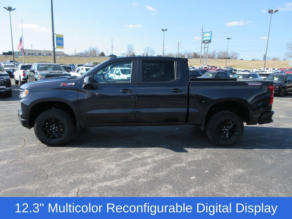 Silverado 1500 LT Trail Boss, 4D Crew Cab, EcoTec3 5.3L V8, 10-Speed Automatic, 4WD, Dark Ash Metallic, Black Cloth, 12.3 Multicolor Reconfigurable Digital Display, Apple CarPlay/Android Auto, Heated front seats, Heated Steering Wheel, Power driver seat, Remote Vehicle Starter System. Convenience Package (Heated Steering Wheel, Remote Vehicle Starter System, 10-Way Power Driver Seat w/Lumbar, 120-Volt Bed Mounted Power Outlet, 120-Volt Instrument Panel Power Outlet, Dual Rear USB Ports (Charge Only), Dual-Zone Automatic Climate Control, Electric Rear-Window Defogger, Heated Driver & Front Outboard Passenger Seats, Keyless Open & Start, Leather Wrapped Steering Wheel, Manual Tilt/Telescoping Steering Column, and Theft Deterrent System (Unauthorized Entry)), Dark Essentials Package (LPO) (Black Name Plates (LPO)), Preferred Equipment Group 2LT (12.3 Multicolor Reconfigurable Digital Display, 6-Speaker Audio System, All-Weather Floor Liner (LPO) (AAK), Auto-Locking Rear Differential, Bluetooth® For Phone, Chevrolet Connected Access Capable, Color-Keyed Carpeting Floor Covering, Compass, Deep-Tinted Glass, Electrical Steering Column Lock, Electronic Cruise Control, EZ Lift Power Lock & Release Tailgate, Front LED Fog Lamps, HD Rear Vision Camera, Heated Power-Adjustable Outside Mirrors, High Gloss Black Mirror Caps, Inside Rear-View Mirror w/Tilt, LED Cargo Area Lighting, OnStar & Chevrolet Connected Services Capable, Performance Red Recovery Hooks, Power Front Windows w/Driver Express Up/Down, Power Front Windows w/Passenger Express Down, Power Rear Windows w/Express Down, Rear 60/40 Folding Bench Seat (Folds Up), SiriusXM w/360L, Standard Tailgate, Steering Wheel Audio Controls, Wi-Fi Hot Spot Capable, and Wireless Phone Projection), Protection Package (Chevytec Spray-On Black Bedliner and Rear Wheelhouse Liners), Suspension Package (Heavy-Duty Air Filter and Hill Descent Control), Trailering Package (Hitch Guidance), Silverado 1500 LT Trail Boss, 4D Crew Cab, EcoTec3 5.3L V8, 10-Speed Automatic, 4WD, Dark Ash Metallic, Black Cloth, Apple CarPlay/Android Auto, Heated front seats, Power driver seat, 170 Amp Alternator, 2 USB Data Ports, 220 Amp Alternator, 4-Wheel Disc Brakes, 40/20/40 Front Split-Bench Seat, 6 Speakers, ABS brakes, Air Conditioning, Alloy wheels, AM/FM radio: SiriusXM with 360L, Auto High-beam Headlights, Automatic Emergency Braking, Automatic temperature control, Auxiliary External Transmission Oil Cooler, Black Tailgate CHEVROLET Lettering (LPO), Brake assist, Cloth Seat Trim, Delay-off headlights, Driver door bin, Driver vanity mirror, Dual Exhaust w/Polished Outlets, Dual front impact airbags, Dual front side impact airbags, Electronic Stability Control, Electronic Transmission Range Selector Shifter, External Engine Oil Cooler, Floor Mounted Center Console, Following Distance Indicator, Forward Collision Alert, Front anti-roll bar, Front Bucket Seats, Front Center Armrest w/Storage, Front dual zone A/C, Front fog lights, Front License Plate Kit, Front Pedestrian Braking, Front reading lights, Front wheel independent suspension, Fully automatic headlights, Heated door mirrors, Illuminated entry, IntelliBeam Automatic High Beam On/Off, Lane Keep Assist w/Lane Departure Warning, Low tire pressure warning, Not Equipped w/Dynamic Fuel Management, Not Equipped w/Steering Column Lock, Occupant sensing airbag, Outside temperature display, Overhead airbag, Overhead console, Panic alarm, Passenger door bin, Passenger vanity mirror, Power door mirrors, Power steering, Power windows, Premium audio system: Chevrolet Infotainment 3 Premium, Radio data system, Radio: Chevrolet Infotainment 3 Premium System, Rear reading lights, Rear step bumper, Rear window defroster, Remote keyless entry, Security system, Speed control, Speed-sensing steering, Split folding rear seat, Steering wheel mounted audio controls, Tachometer, Telescoping steering wheel, Tilt steering wheel, Tract
