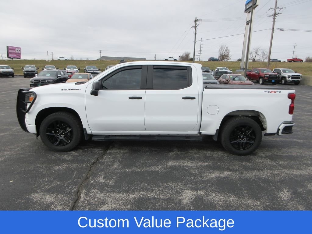 Silverado 1500 Custom, 4D Crew Cab, 2.7L Turbo, 8-Speed Automatic, 4WD, Summit White, Black Cloth, Custom Convenience Package, Custom Value Package, Dark Essentials Package (LPO), Deep-Tinted Glass, Electronic Cruise Control, HD Rear Vision Camera, High Capacity Suspension Package, Hitch Guidance, Preferred Equipment Group 1CX, Remote Vehicle Starter System, Trailering Package. Custom Convenience Package (Remote Vehicle Starter System, Electric Rear-Window Defogger, EZ Lift Power Lock & Release Tailgate, LED Cargo Area Lighting, and Theft Deterrent System (Unauthorized Entry)), Custom Value Package, Dark Essentials Package (LPO) (Black Name Plates (LPO)), High Capacity Suspension Package, Preferred Equipment Group 1CX (Deep-Tinted Glass, Electronic Cruise Control, HD Rear Vision Camera, 10-Way Power Driver Seat w/Lumbar, 120-Volt Bed Mounted Power Outlet, 120-Volt Instrument Panel Power Outlet, 3.5 Monochromatic Display Driver Info Center, Bluetooth® For Phone, Chevrolet Connected Access Capable, Color-Keyed Carpeting Floor Covering, Compass, Dual Rear USB Ports (Charge Only), Electrical Steering Column Lock, Front Frame-Mounted Black Recovery Hooks, Front Rubberized Vinyl Floor Mats, Manual Tilt Wheel Steering Column, OnStar & Chevrolet Connected Services Capable, Power Front Windows w/Driver Express Up/Down, Power Front Windows w/Passenger Express Down, Power Rear Windows w/Express Down, Rear 60/40 Folding Bench Seat (Folds Up), Rear Rubberized-Vinyl Floor Mats, Remote Keyless Entry, SiriusXM Radio, Standard Tailgate, Wi-Fi Hot Spot Capable, and Wireless Phone Projection), Trailering Package (Hitch Guidance), Silverado 1500 Custom, 4D Crew Cab, 2.7L Turbo, 8-Speed Automatic, 4WD, Summit White, Black Cloth, 3.42 Rear Axle Ratio, 4-Wheel Disc Brakes, 40/20/40 Front Split-Bench Seat, 6 Speakers, 6-Speaker Audio System, ABS brakes, Air Conditioning, All-Weather Floor Liner (LPO), Alloy wheels, AM/FM radio: SiriusXM, Apple CarPlay/Android Auto, Auto High-beam Headlights, Automatic Emergency Braking, Black Tailgate CHEVROLET Lettering (LPO), Brake assist, Bumpers: body-color, Cloth Seat Trim, Delay-off headlights, Driver door bin, Driver vanity mirror, Dual front impact airbags, Dual front side impact airbags, Electronic Stability Control, Following Distance Indicator, Forward Collision Alert, Front anti-roll bar, Front Black Bowtie Emblem (LPO), Front Center Armrest w/Storage, Front License Plate Kit, Front Pedestrian Braking, Front reading lights, Front wheel independent suspension, Fully automatic headlights, Heated door mirrors, Illuminated entry, IntelliBeam Automatic High Beam On/Off, Lane Keep Assist w/Lane Departure Warning, Low tire pressure warning, Not Equipped w/Rear USB Ports, Not Equipped w/Steering Column Lock, Occupant sensing airbag, Outside temperature display, Overhead airbag, Overhead console, Panic alarm, Passenger door bin, Passenger vanity mirror, Power door mirrors, Power driver seat, Power steering, Power windows, Premium audio system: Chevrolet Infotainment 3, Radio data system, Radio: Chevrolet Infotainment 3 System, Rear reading lights, Rear step bumper, Rear window defroster, Remote keyless entry, Security system, Speed control, Speed-sensing steering, Split folding rear seat, Tachometer, Tilt steering wheel, Traction control, Trip computer, Variably intermittent wipers, Voltmeter, Wheels: 20 x 9 Bright Silver Painted Aluminum, and Wheels: 20 x 9 High Gloss Black Painted Alum. 2023 Chevrolet Silverado 1500 Custom 4WD 8-Speed Automatic 2.7L Turbo Recent Arrival!