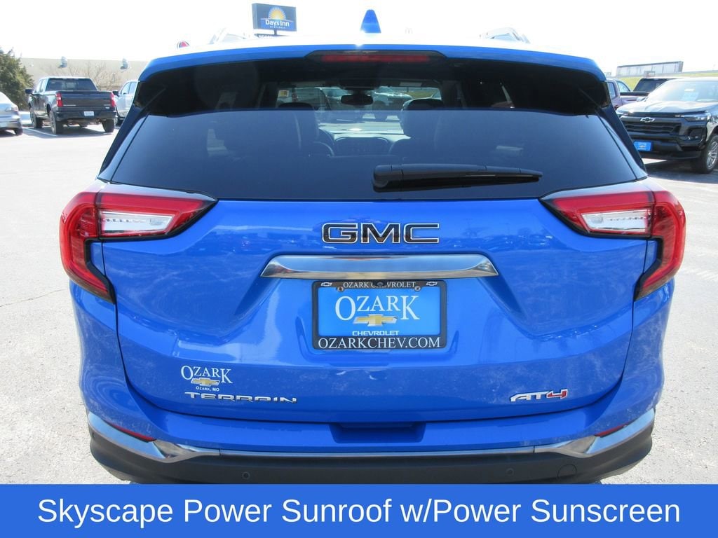 Terrain AT4, 4D Sport Utility, 1.5L DOHC, 9-Speed Automatic, AWD, Riptide Metallic, Jet Black Leather, Heated front seats, Infotainment Package II, Navigation system: GMC Connected Navigation, Perforated Leather-Appointed Seat Trim w/AT4 Logo, Power Liftgate, Preferred Equipment Group 4SC, Premium 7-Speaker Bose Sound System w/Amplifier, Radio: GMC Infotainment Audio System w/Navigation, SiriusXM, Skyscape Power Sunroof w/Power Sunscreen, Steering wheel mounted audio controls, Wireless Apple CarPlay/Wireless Android Auto. Infotainment Package II (Premium 7-Speaker Bose Sound System w/Amplifier, Radio: GMC Infotainment Audio System w/Navigation, and SiriusXM), Preferred Equipment Group 4SC, License Plate Front Mounting Package, Tech Package (Front & Rear Park Assist, HD Surround Vision, and Head-Up Display), Terrain AT4, 4D Sport Utility, 1.5L DOHC, 9-Speed Automatic, AWD, Riptide Metallic, Jet Black Leather, Heated front seats, Navigation system: GMC Connected Navigation, Perforated Leather-Appointed Seat Trim w/AT4 Logo, Power Liftgate, Skyscape Power Sunroof w/Power Sunscreen, Steering wheel mounted audio controls, Wireless Apple CarPlay/Wireless Android Auto, 2 USB Data Ports, 2 USB Data Ports w/SD Card Reader, 3.47 Final Drive Axle Ratio, 4-Wheel Disc Brakes, 6 Speakers, 6-Speaker Audio System Feature, 6-Way Power Front Passenger Seat, 8-Way Power Driver Seat Adjuster, ABS brakes, Air Conditioning, Alloy wheels, AM/FM radio: SiriusXM, Auto High-beam Headlights, Auto-dimming Rear-View mirror, Automatic temperature control, Bluetooth® For Phone, Brake assist, Bumpers: body-color, Cold Air Grille Shutter, Compass, Delay-off headlights, Driver & Front Passenger Heated Seats, Driver door bin, Driver vanity mirror, Dual front impact airbags, Dual front side impact airbags, Electronic Stability Control, Emergency communication system: OnStar and GMC connected services capable, Four wheel independent suspension, Front anti-roll bar, Front Bucket Seats, Front Center Armrest, Front dual zone A/C, Front fog lights, Front Passenger 2-Way Power Lumbar, Front reading lights, Fully automatic headlights, Garage door transmitter, Heated door mirrors, Heated steering wheel, Illuminated entry, Low tire pressure warning, Memory seat, Occupant sensing airbag, Outside temperature display, Overhead airbag, Overhead console, Panic alarm, Passenger door bin, Passenger vanity mirror, Power door mirrors, Power Driver Lumbar Control, Power driver seat, Power passenger seat, Power steering, Power windows, Radio data system, Radio: GMC Infotainment Audio System w/8 Display, Rear anti-roll bar, Rear seat center armrest, Rear window defroster, Rear window wiper, Remote keyless entry, Roof rack: rails only, Security system, Speed control, Speed-sensing steering, Split folding rear seat, Spoiler, Tachometer, Telescoping steering wheel, Tilt steering wheel, Traction control, Trip computer, Turn signal indicator mirrors, Variably intermittent wipers, and Wheels: 17 x 7 Gloss Black Aluminum. 2024 GMC Terrain AT4 AWD 9-Speed Automatic 1.5L DOHC Recent Arrival! Odometer is 14226 miles below market average! 23/28 City/Highway MPG