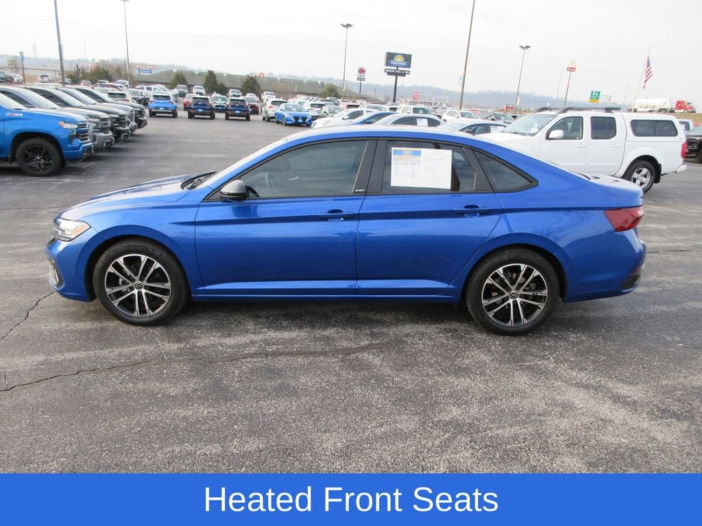 One-Owner, Apple/Android Car Play, Jetta 1.5T Sport, 4D Sedan, 1.5L I-4 DI DOHC Turbocharged, 8-Speed Automatic with Tiptronic, FWD, Cloth, Heated Front Seats, Steering wheel mounted audio controls. Jetta 1.5T Sport, 4D Sedan, 1.5L I-4 DI DOHC Turbocharged, 8-Speed Automatic with Tiptronic, FWD, Cloth, Heated Front Seats, Steering wheel mounted audio controls, 4 Speakers, 4-Wheel Disc Brakes, ABS brakes, Active Blind Spot Monitor, Air Conditioning, Alloy wheels, Auto-dimming Rear-View mirror, Brake assist, Bumpers: body-color, Cloth Seat Trim, Delay-off headlights, Driver door bin, Driver vanity mirror, Dual front impact airbags, Dual front side impact airbags, Electronic Stability Control, Emergency communication system: VW Car-Net Safe & Secure 5-year, Exterior Parking Camera Rear, Front anti-roll bar, Front Bucket Seats, Front Center Armrest, Front wheel independent suspension, Fully automatic headlights, Heated door mirrors, Heated front seats, Illuminated entry, Leather Shift Knob, Leather steering wheel, Low tire pressure warning, Occupant sensing airbag, Outside temperature display, Overhead airbag, Overhead console, Panic alarm, Passenger door bin, Passenger vanity mirror, Power door mirrors, Power steering, Power windows, Radio data system, Radio: MIB3 Composition Color w/6.5 Touchscreen, Rain sensing wipers, Rear anti-roll bar, Rear reading lights, Rear seat center armrest, Rear window defroster, Remote keyless entry, Speed control, Speed-sensing steering, Split folding rear seat, Tachometer, Telescoping steering wheel, Tilt steering wheel, Traction control, Trip computer, Variably intermittent wipers, and Wheels: 17 2-Tone Machined Alloy. 2024 Volkswagen Jetta 1.5T Sport FWD 8-Speed Automatic with Tiptronic 1.5L I-4 DI DOHC Turbocharged Odometer is 10045 miles below market average! 29/40 City/Highway MPG