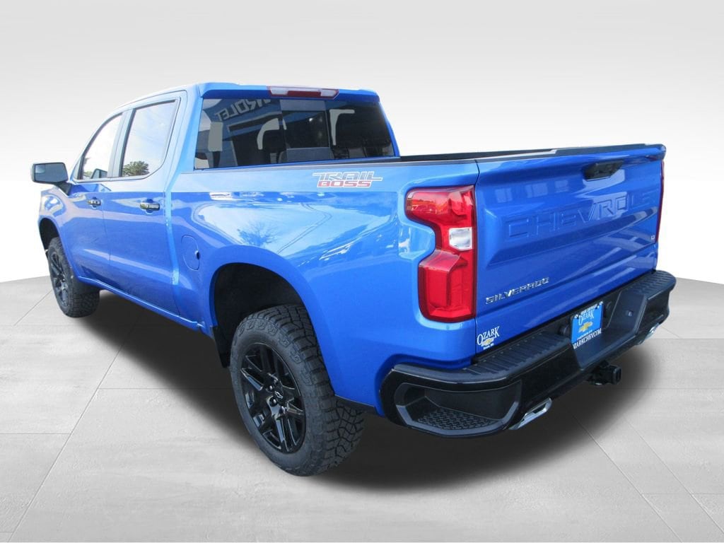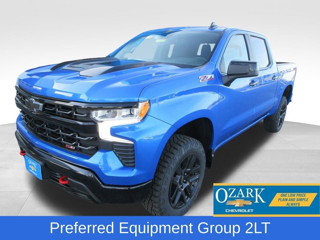 New Price! Riptide Blue Metallic 2025 Chevrolet Silverado 1500 LT Trail Boss 4WD 8-Speed Automatic EcoTec3 5.3L V8 Silverado 1500 LT Trail Boss, 4D Crew Cab, EcoTec3 5.3L V8, 8-Speed Automatic, 4WD, Riptide Blue Metallic, Black Cloth, 10-Way Power Driver Seat w/Lumbar, 12.3 Multicolor Reconfigurable Digital Display, 120-Volt Bed Mounted Power Outlet, 120-Volt Interior Power Outlet, 2 USB Data Ports, 6-Speaker Audio System, All-Weather Floor Liner (LPO) (AAK), Auto-Locking Rear Differential, Bluetooth® For Phone, Chevytec Spray-On Black Bedliner, Color-Keyed Carpeting Floor Covering, Convenience Package, Convenience Package II, Deep-Tinted Glass, Dual Rear USB Ports (Charge Only), Dual-Zone Automatic Climate Control, Electric Rear-Window Defogger, Electronic Cruise Control, Electronic Transmission Range Selector Shifter, EZ Lift Power Lock & Release Tailgate, Floor Mounted Center Console, Front Bucket Seats, Front LED Fog Lamps, HD Rear Vision Camera, Heated Driver & Front Outboard Passenger Seats, Heated Power-Adjustable Outside Mirrors, Heated Steering Wheel, Heavy-Duty Air Filter, High Gloss Black Mirror Caps, Hill Descent Control, Hitch Guidance, Hitch Guidance w/Hitch View, In-Vehicle Trailering System App, Inside Rear-View Mirror w/Tilt, Integrated Trailer Brake Controller, Keyless Open & Start, LED Cargo Area Lighting, Manual Tilt/Telescoping Steering Column, OnStar Services Capable, Performance Red Recovery Hooks, Power Front Windows w/Driver Express Up/Down, Power Front Windows w/Passenger Express Down, Power Rear Windows w/Express Down, Power Sliding Rear Window w/Rear Defogger, Power Sunroof, Preferred Equipment Group 2LT, Premium Bose 7-Speaker Sound System, Protection Package, Rear 60/40 Folding Bench Seat (Folds Up), Rear Wheelhouse Liners, Remote Vehicle Starter System, SiriusXM w/360L Trial Subscription, Standard Tailgate, Steering Wheel Audio Controls, Suspension Package, Teen Driver, Theft Deterrent System (Unauthorized Entry), Tire Pressure Monitoring System, Trailering Package, Universal Home Remote, Wi-Fi Hot Spot Capable, Wireless Charging, Wrapped Steering Wheel.