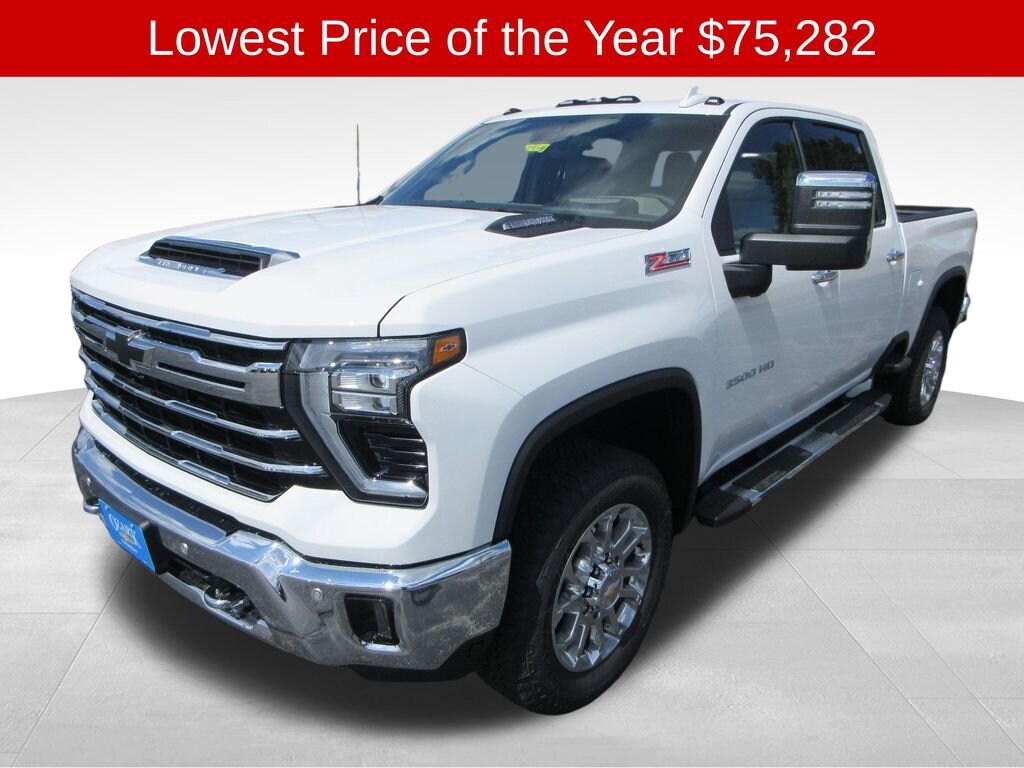 Summit White 2025 Chevrolet Silverado 3500HD LTZ 4WD 10-Speed Automatic Duramax 6.6L V8 Turbodiesel Silverado 3500HD LTZ, 4D Crew Cab, Duramax 6.6L V8 Turbodiesel, 10-Speed Automatic, 4WD, Summit White, Gideon/Very Dark Atmosphere Leather, 120-Volt Bed Mounted Power Outlet, 120-Volt Interior Power Outlet, 170 Amp Alternator, 2 Charge/Data USB Ports Inside Center Console, 6-Speaker Audio System Feature, Adaptive Cruise Control, Apple CarPlay/Android Auto, Auto-Dimming Inside Rear-View Mirror, Auto-Dimming Inside Rearview Mirror w/Camera, Bed View Camera w/2 Trailer Camera Provisions, Bluetooth® For Phone, Bose Premium 7-Speaker Sound System, Chevrolet Connected Access Capable, Chevytec Spray-On Black Bedliner, Chrome Door Handles, Chrome Mirror Caps, Color-Keyed Carpeting Floor Covering, Compass Located In Instrument Cluster, Deep-Tinted Glass, Electric Rear-Window Defogger, EZ Lift Power Lock & Release Tailgate, Floor-Mounted Center Console, Front Bucket Seats, Front LED Fog Lamps, Front Rain-Sensing Wipers, Front Rubberized Vinyl Floor Mats, Gooseneck/5th Wheel Prep Package, HD Rear Vision Camera, HD Surround Vision, Heated 2nd Row Outboard Seats, Heated Driver & Front Outboard Passenger Seats, Heated Steering Wheel, Hill Descent Control, Hitch Guidance w/Hitch View, Hitch Package (LPO), In-Vehicle Trailering App System, Keyless Open & Start, LED Cargo Area Lighting, LTZ Convenience Package, LTZ Convenience Package II, LTZ Plus Package, Manual Tilt-Wheel/Telescoping Steering Column, Memory seat, Multicolor 15 Diagonal Head-Up Display, OnStar Services Capable, Power Door Locks, Power driver seat, Power Front Windows w/Driver Express Up/Down, Power Front Windows w/Passenger Express Up/Down, Power Rear Windows w/Express Down, Power Sliding Rear Window w/Defogger, Preferred Equipment Group 1LZ, Push Button Start, Rear Cross Traffic Alert, Rear Rubberized-Vinyl Floor Mats, Remote Vehicle Starter System, Safety Alert Seat, Safety Package, SiriusXM w/360L Trial Subscription, Standard Tailgate, Steering Wheel Audio Controls, Steering Wheel Mounted Electronic Cruise Control, Technology Package, Trailer Camera Provisions, Trailer Side Blind Zone Alert, Ultrasonic Front & Rear Park Assist, Unauthorized Entry Theft-Deterrent System, Universal Home Remote, Up-Level Rear Seat w/Storage Package, Ventilated Driver & Front Passenger Seats, Wi-Fi Hotspot Capable, Wireless Charging, Wrapped Steering Wheel, Z71 Off-Road Package.
