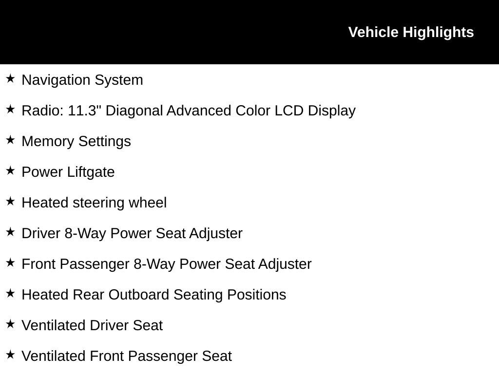 - Ventilated driver and front passenger seats