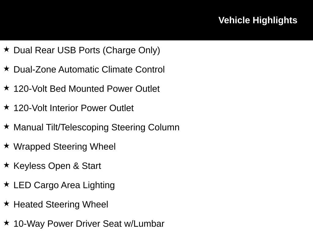 • 120-volt bed mounted power outlet