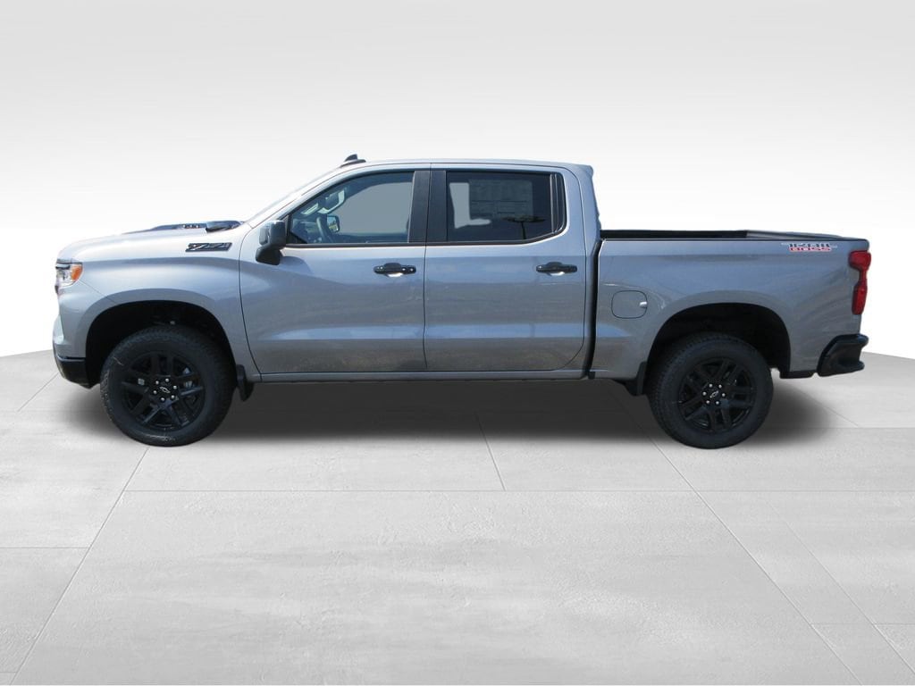 Sterling Gray Metallic 2026 Chevrolet Silverado 1500 LT Trail Boss 4WD 8-Speed Automatic EcoTec3 6.2L V8 FRONT BUCKET SEATS, ACTIVE EXHAUST, Silverado 1500 LT Trail Boss, 4D Crew Cab, EcoTec3 6.2L V8, 8-Speed Automatic, 4WD, Sterling Gray Metallic, Jet Black Leather, Black Name Plates (LPO), Chevytec Spray-On Black Bedliner, Convenience Package II, Dark Essentials Package (LPO), Hitch Guidance w/Hitch View, In-Vehicle Trailering System App, Leather Package, Leather-Appointed Front Seat Trim, Power Sliding Rear Window w/Rear Defogger, Premium Bose 7-Speaker Sound System, Protection Package, Rear Wheelhouse Liners, Universal Home Remote, Up-Level Rear Seat w/Storage Package.