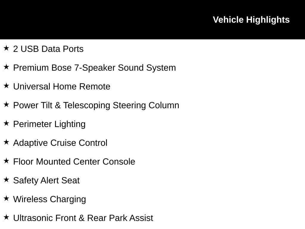 - Bose is renowned for expert sound engineering and high-quality audio and with premium speakers positioned throughout the cabin, you'll get rich, concert-like sound