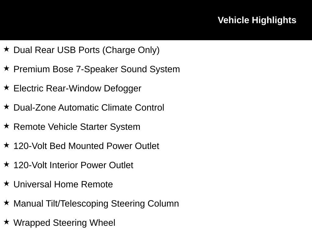 - LED lighting on Crew Cab and Double Cab models, incandescent on Regular Cab models