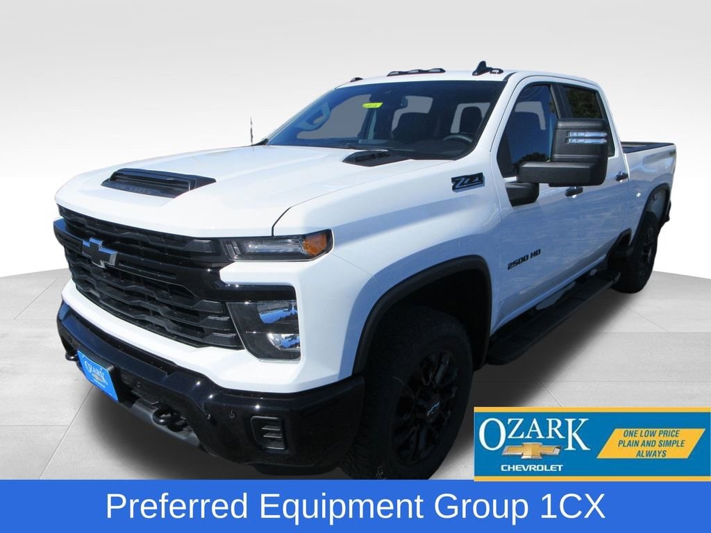 Summit White 2026 Chevrolet Silverado 2500HD Custom 4WD 10-Speed Automatic 6.6L V8 Silverado 2500HD Custom, 4D Crew Cab, 6.6L V8, 10-Speed Automatic, 4WD, Summit White, Jet Black Cloth, 10-Way Power Driver Seat Adjuster w/Lumbar, 120-Volt Bed Mounted Power Outlet, 120-Volt Interior Power Outlet, 170 Amp Alternator, 2-Speed Electronic Shift Transfer Case, 3.5 Diagonal Monochromatic Display DIC, Black Chevytec Spray-On Bedliner, Black Mirror Caps, Bluetooth® For Phone, Chevrolet Connected Access Capable, Color-Keyed Carpeting Floor Covering, Compass, Custom Convenience Package, CX Safety Package, Deep-Tinted Glass, Dual Rear USB Ports (Charge Only), Electric Rear-Window Defogger, Electronic Cruise Control w/Set & Resume Speed, EZ Lift Power Lock & Release Tailgate, Front Rubberized Vinyl Floor Mats, Gooseneck/5th Wheel Prep Package, HD Rear Vision Camera, Heated Vertical Trailering Mirrors, Hill Descent Control, Hitch Package (LPO), Lane Change Alert w/Side Blind Zone Alert, LED Cargo Area Lighting, Locking Tailgate, Manual Tailgate Function w/No EZ Lift, Manual Tilt-Wheel Steering Column, Off-Road Suspension, OnStar Services Capable, Power Door Locks, Power Front Windows w/Driver Express Up/Down, Power Front Windows w/Passenger Express Down, Power Rear Windows w/Express Down, Preferred Equipment Group 1CX, Push Button Start, Rear 60/40 Folding Bench Seat (Folds Up), Rear Cross Traffic Alert, Rear Rubberized Vinyl Floor Mats, Remote Keyless Entry, Remote Vehicle Starter System, SiriusXM w/360L Trial Subscription, Standard Tailgate, Ultrasonic Front & Rear Park Assist, Unauthorized Entry Theft-Deterrent System, Wi-Fi Hotspot Capable, Wireless Phone Projection, Z71 Off-Road Package.