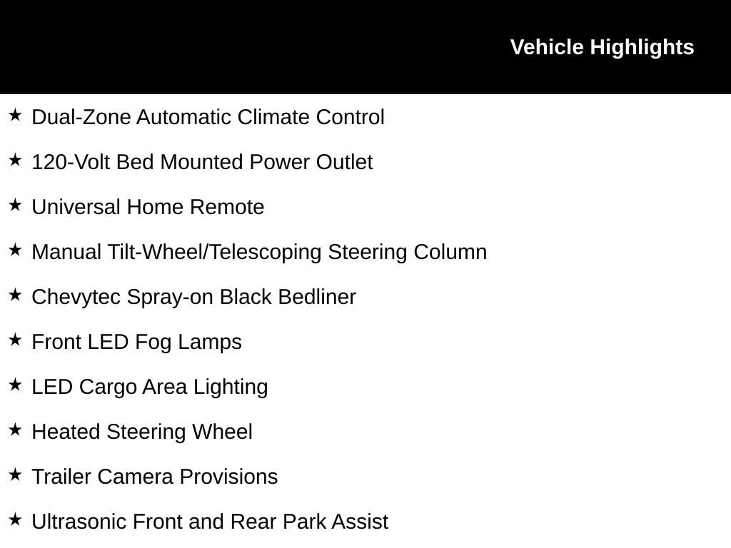- Camera in the Center High Mount Stop Lamp (CHMSL) provides an elevated view of the truck bed from the back of the cab1