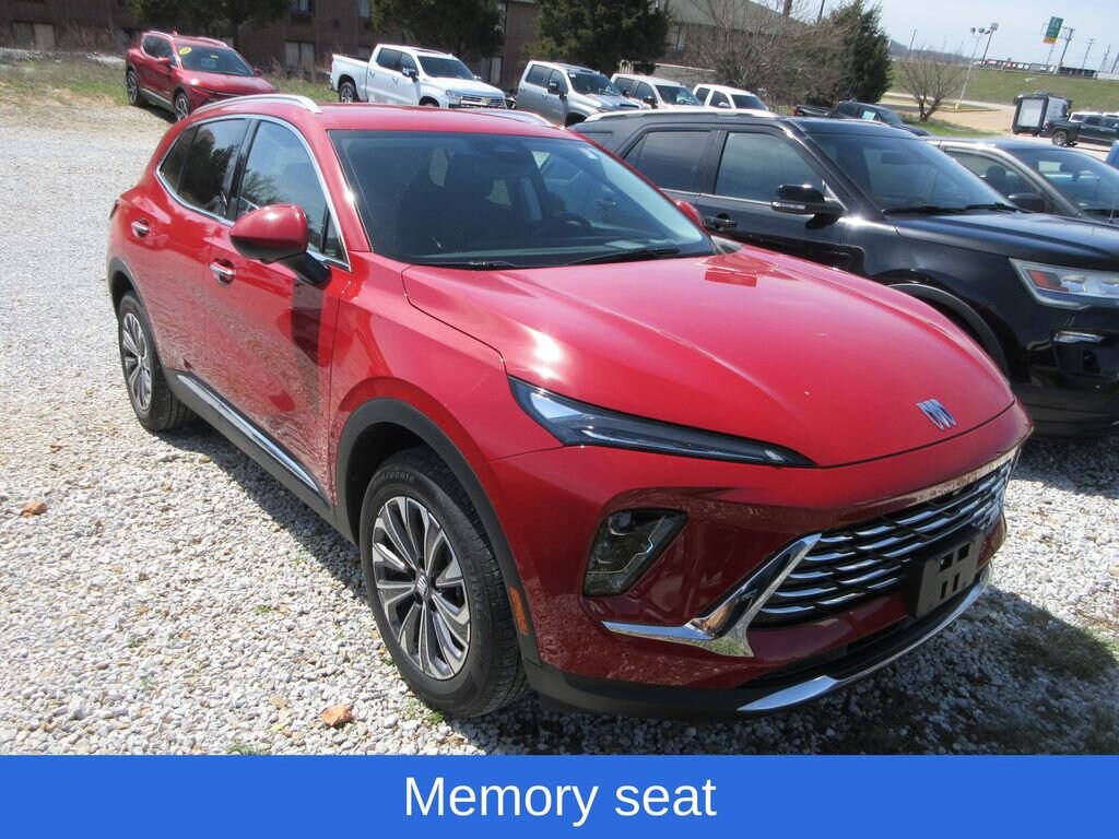 Envision Preferred, 4D Sport Utility, 2.0L Turbocharged, 9-Speed Automatic, AWD, Brilliant Red, Ebony Seats With Ebony Interior Accents Premium Synthetic, Heads-Up Display, Memory seat, Perforated Leatherette Seat Trim, Power Liftgate, Wireless Apple CarPlay/Wireless Android Auto. Preferred Equipment Group 1SC, Envision Preferred, 4D Sport Utility, 2.0L Turbocharged, 9-Speed Automatic, AWD, Brilliant Red, Ebony Seats With Ebony Interior Accents Premium Synthetic, Heads-Up Display, Memory seat, Perforated Leatherette Seat Trim, Power Liftgate, Wireless Apple CarPlay/Wireless Android Auto, 3.47 Final Drive Axle Ratio, 30 Diagonal LCD Display, 4-Wheel Disc Brakes, 9 Speakers, ABS brakes, Air Conditioning, Alloy wheels, AM/FM radio: SiriusXM, Auto High-beam Headlights, Auto-dimming door mirrors, Auto-dimming Rear-View mirror, Automatic temperature control, Bose Premium 9-Speaker Audio System Feature, Brake assist, Bumpers: body-color, Compass, Delay-off headlights, Driver 4-Way Power Lumbar Seat Adjuster, Driver 8-Way Power Seat Adjuster, Driver door bin, Driver vanity mirror, Dual front impact airbags, Dual front side impact airbags, Electronic Stability Control, Emergency communication system: OnStar and Buick connected services capable, Exterior Parking Camera Rear, Four wheel independent suspension, Front anti-roll bar, Front Bucket Seats, Front Center Armrest, Front Passenger 6-Way Manual Seat Adjuster, Front reading lights, Fully automatic headlights, Heated door mirrors, Illuminated entry, Knee airbag, Leather steering wheel, Low tire pressure warning, Navigation System, Occupant sensing airbag, Outside temperature display, Overhead airbag, Overhead console, Panic alarm, Passenger door bin, Passenger vanity mirror, Power door mirrors, Power driver seat, Power steering, Power windows, Premium audio system: Buick Infotainment System, Radio data system, Radio: Infotainment Center, Rear anti-roll bar, Rear reading lights, Rear seat center armrest, Rear window defroster, Rear window wiper, Remote keyless entry, Security system, SiriusXM Trial Subscription, Speed control, Split folding rear seat, Spoiler, Steering wheel mounted audio controls, Telescoping steering wheel, Tilt steering wheel, Traction control, Trip computer, Variably intermittent wipers, and Wheels: 18 Alloy with Technical Gray. 2025 Buick Envision Preferred AWD 9-Speed Automatic 2.0L Turbocharged Recent Arrival! 22/28 City/Highway MPG