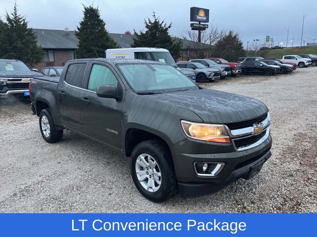 Colorado LT, 4D Crew Cab, V6, 8-Speed Automatic, 4WD, Deepwood Green Metallic, Jet Black/Dark Ash Cloth, EZ-Lift & Lower Tailgate, Front Fog Lamps, Heavy-Duty Trailering Package, LT Convenience Package, Manual Rear-Sliding Window, Rear-Window Electric Defogger, Remote Vehicle Starter System. Heavy-Duty Trailering Package, LT Convenience Package (EZ-Lift & Lower Tailgate, Front Fog Lamps, Manual Rear-Sliding Window, Rear-Window Electric Defogger, and Remote Vehicle Starter System), Preferred Equipment Group 4LT, Colorado LT, 4D Crew Cab, V6, 8-Speed Automatic, 4WD, Deepwood Green Metallic, Jet Black/Dark Ash Cloth, 3.42 Rear Axle Ratio, 4-Wheel Disc Brakes, 6 Speakers, 6-Speaker Audio System Feature, ABS brakes, Air Conditioning, Alloy wheels, AM/FM radio: SiriusXM, Apple CarPlay, Automatic Locking Rear Differential, Body-Color Outside Heated Power-Adjustable Mirrors, Bumpers: body-color, Cloth Seat Trim, Compass, Delay-off headlights, Driver 4-Way Power Seat Adjuster, Driver door bin, Driver vanity mirror, Dual front impact airbags, Dual front side impact airbags, Electronic Stability Control, Exterior Parking Camera Rear, Front anti-roll bar, Front Bucket Seats, Front Center Armrest, Front License Plate Kit, Front reading lights, Front wheel independent suspension, Fully automatic headlights, Illuminated entry, Low tire pressure warning, Occupant sensing airbag, Outside temperature display, Overhead airbag, Overhead console, Panic alarm, Passenger door bin, Passenger vanity mirror, Power door mirrors, Power driver seat, Power steering, Power windows, Premium audio system: Chevrolet MyLink, Radio data system, Radio: AM/FM Stereo w/8 Diagonal Color Touch Screen, Rear reading lights, Rear seat center armrest, Rear step bumper, Remote keyless entry, Security system, SiriusXM Satellite Radio, Speed control, Speed-sensing steering, Steering wheel mounted audio controls, Tachometer, Telescoping steering wheel, Tilt steering wheel, Tow/Haul Mode, Traction control, Trip computer, Variably intermittent wipers, and Wheels: 17 x 8 Blade Silver Metallic Cast Alloy. 2018 Chevrolet Colorado LT 4WD 8-Speed Automatic V6 Recent Arrival!