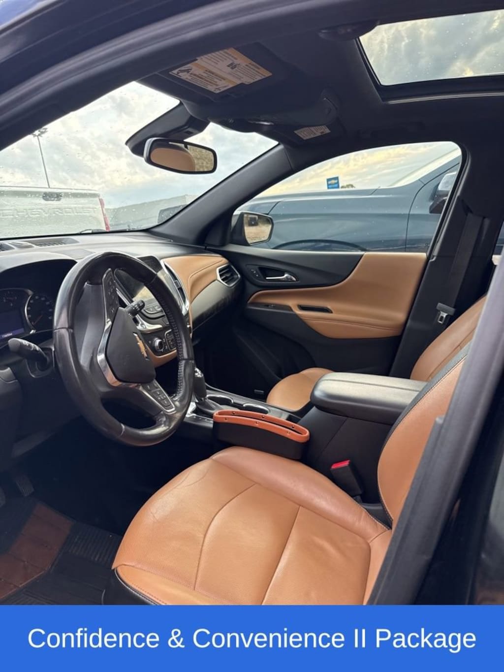 Equinox Premier, 4D Sport Utility, 1.5L DOHC, 6-Speed Automatic Electronic with Overdrive, FWD, Mosaic Black Metallic, Jet Black/Brandy Leather, Adaptive Cruise Control - Camera, Confidence & Convenience II Package, Driver Confidence III Package, Driver Convenience II Package, HD Surround Vision, Heated Driver & Front Passenger Seats, Heated Rear Seats, Heated Steering Wheel, Infotainment II Package, Power Sunroof, Preferred Equipment Group 1LZ, Steering wheel mounted audio controls, Ventilated Driver Seat, Ventilated Front Passenger Seat. Confidence & Convenience II Package, Driver Confidence III Package (Adaptive Cruise Control - Camera, HD Surround Vision, and Safety Alert Seat), Driver Convenience II Package (Heated Rear Seats, Heated Steering Wheel, Ventilated Driver Seat, Ventilated Front Passenger Seat, and 8-Way Power Front Passenger Seat Adjuster), Infotainment II Package (SiriusXM Radio), Preferred Equipment Group 1LZ, Equinox Premier, 4D Sport Utility, 1.5L DOHC, 6-Speed Automatic Electronic with Overdrive, FWD, Mosaic Black Metallic, Jet Black/Brandy Leather, Heated Driver & Front Passenger Seats, Power Sunroof, Steering wheel mounted audio controls, 18 Aluminum Wheels, 2 Rear USB Charging-Only Ports, 2 USB Data Ports, 2 USB Data Ports w/SD Card Reader, 2-Way Power Driver Lumbar Control Seat Adjuster, 3.50 Final Drive Axle Ratio, 4-Wheel Disc Brakes, 6 Speaker Audio System Feature, 6 Speakers, 8-Way Power Driver Seat Adjuster, ABS brakes, Air Conditioning, Alloy wheels, AM/FM radio: SiriusXM, Apple CarPlay/Android Auto, Auto High-beam Headlights, Auto-dimming door mirrors, Auto-dimming Rear-View mirror, Automatic temperature control, Bluetooth® For Phone, Brake assist, Bumpers: body-color, Compass, Delay-off headlights, Driver door bin, Driver vanity mirror, Dual front impact airbags, Dual front side impact airbags, Electronic Stability Control, Emergency communication system: OnStar and Chevrolet connected services capable, Four wheel independent suspension, Front anti-roll bar, Front Bucket Seats, Front Center Armrest, Front dual zone A/C, Front fog lights, Front Passenger 4-Way Manual Seat Adjuster, Front reading lights, Fully automatic headlights, Garage door transmitter, Heated door mirrors, Heated front seats, Illuminated entry, Low tire pressure warning, Memory seat, Occupant sensing airbag, Outside temperature display, Overhead airbag, Overhead console, Panic alarm, Passenger door bin, Passenger vanity mirror, Perforated Leather-Appointed Seat Trim, Power door mirrors, Power driver seat, Power Liftgate, Power steering, Power windows, Premium audio system: Chevrolet Infotainment 3 Plus, Radio data system, Radio: Chevrolet Infotainment 3 Plus System, Rear anti-roll bar, Rear reading lights, Rear seat center armrest, Rear window defroster, Rear window wiper, Remote keyless entry, Roof rack: rails only, Security system, Speed control, Speed-sensing steering, Split folding rear seat, Spoiler, Tachometer, Telescoping steering wheel, Tilt steering wheel, Traction control, Trip computer, Turn signal indicator mirrors, and Variably intermittent wipers. 2020 Chevrolet Equinox Premier FWD 6-Speed Automatic Electronic with Overdrive 1.5L DOHC Recent Arrival! 26/31 City/Highway MPG