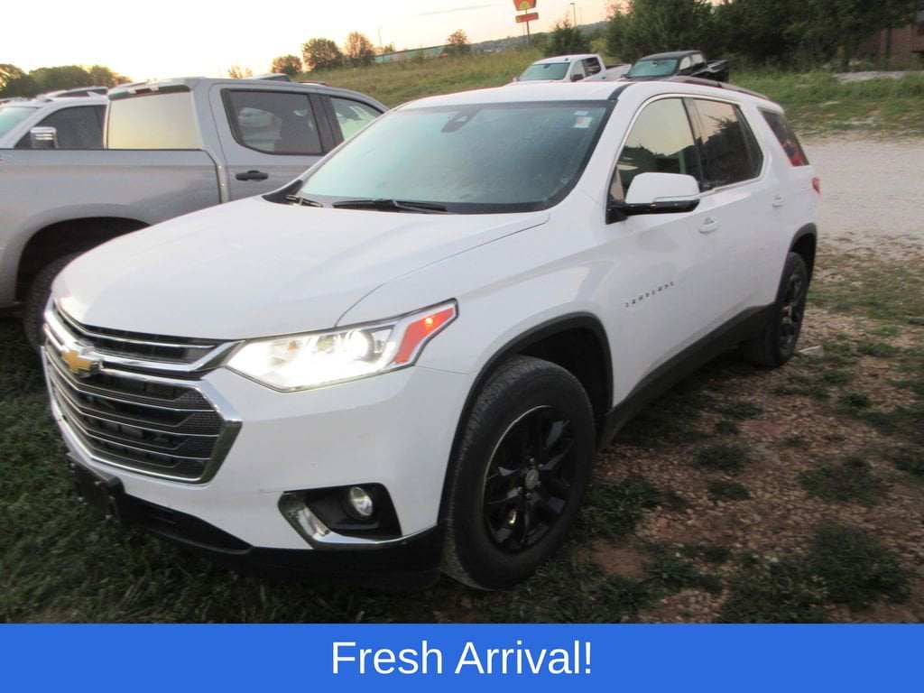 Traverse LT Cloth w/2FL, 4D Sport Utility, 3.6L V6 SIDI VVT, 9-Speed Automatic, AWD, Summit White, Dark Atmosphere/Medium Ash Gray Cloth. Cargo Package (LPO) (Retractable Cargo Shade and Vertical Cargo Net (LPO)), Traverse LT Cloth w/2FL, 4D Sport Utility, 3.6L V6 SIDI VVT, 9-Speed Automatic, AWD, Summit White, Dark Atmosphere/Medium Ash Gray Cloth, 3.49 Axle Ratio, 3rd row seats: split-bench, 4-Wheel Disc Brakes, 6 Speakers, 7-Passenger Seating (2-2-3 Seating Configuration), ABS brakes, Air Conditioning, Alloy wheels, AM/FM radio: SiriusXM, Apple CarPlay/Android Auto, Auto High-beam Headlights, Automatic temperature control, Brake assist, Bumpers: body-color, Compass, Delay-off headlights, Driver door bin, Driver vanity mirror, Dual front impact airbags, Dual front side impact airbags, Electronic Stability Control, Emergency communication system: OnStar and Chevrolet connected services capable, Four wheel independent suspension, Front anti-roll bar, Front Bucket Seats, Front Center Armrest, Front dual zone A/C, Front fog lights, Front reading lights, Fully automatic headlights, Heated door mirrors, High-Intensity Discharge Headlights, Illuminated entry, Lane Departure Warning System, Leather steering wheel, Low tire pressure warning, Occupant sensing airbag, Outside temperature display, Overhead airbag, Overhead console, Panic alarm, Passenger door bin, Passenger vanity mirror, Power door mirrors, Power driver seat, Power steering, Power windows, Premium Cloth Seat Trim, Radio data system, Radio: Chevrolet Infotainment System AM/FM Stereo, Rear air conditioning, Rear anti-roll bar, Rear reading lights, Rear window defroster, Rear window wiper, Remote keyless entry, Roof rack: rails only, Security system, SiriusXM Radio, Speed control, Speed-sensing steering, Spoiler, Steering wheel mounted audio controls, Tachometer, Telescoping steering wheel, Tilt steering wheel, Traction control, Trip computer, Turn signal indicator mirrors, Variably intermittent wipers, Voltmeter, and Wheels: 18 Bright Silver Painted Aluminum. 2020 Chevrolet Traverse LT Cloth w/2FL AWD 9-Speed Automatic 3.6L V6 SIDI VVT Recent Arrival!
