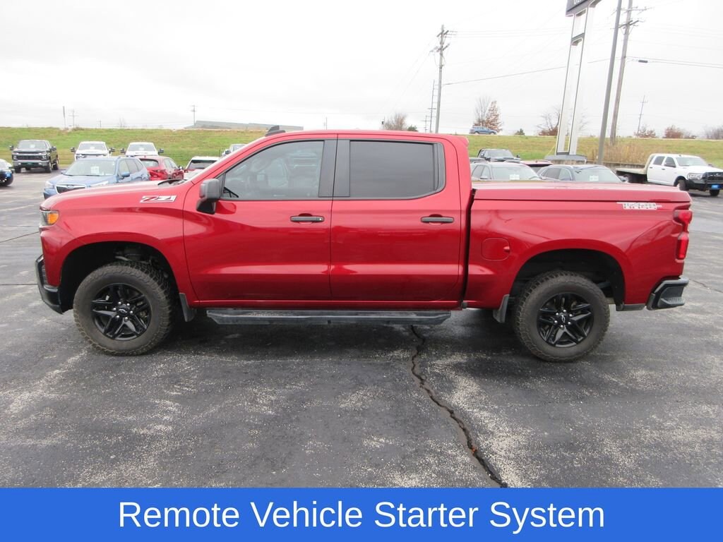 Silverado 1500 Custom Trail Boss, 6-Speed Automatic Electronic with Overdrive, 4WD, Cherry Red Tintcoat, Black Cloth, Bluetooth® For Phone, EZ Lift Power Lock & Release Tailgate, Integrated Trailer Brake Controller, Radio: Chevrolet Infotainment 3 System, Remote Vehicle Starter System, Trailering Package. Trailering Package (Hitch Guidance), Custom Convenience Package (EZ Lift Power Lock & Release Tailgate, Remote Vehicle Starter System, Electric Rear-Window Defogger, LED Cargo Area Lighting, and Theft Deterrent System (Unauthorized Entry)), Infotainment Package (4G LTE Wi-Fi Hot Spot Capable, Chevrolet Connected Access Capable, OnStar & Chevrolet Connected Services Capable, and SiriusXM Radio), Preferred Equipment Group 2CX (Bluetooth® For Phone, 170 Amp Alternator, 3.5 Diagonal Monochromatic Display, Auto-Locking Rear Differential, Color-Keyed Carpeting Floor Covering, Compass, Deep-Tinted Glass, Electronic Cruise Control, Front Rubberized Vinyl Floor Mats, High Gloss Black Grille, Manual Tilt Wheel Steering Column, Performance Red Recovery Hooks, Power Door Locks, Power Front Windows w/Driver Express Up/Down, Power Front Windows w/Passenger Express Down, Power Rear Windows w/Express Down, Rear 60/40 Folding Bench Seat (Folds Up), Rear Rubberized-Vinyl Floor Mats, Remote Keyless Entry, and Standard Tailgate), Suspension Package (Heavy-Duty Air Filter and Hill Descent Control), Silverado 1500 Custom Trail Boss, 6-Speed Automatic Electronic with Overdrive, 4WD, Cherry Red Tintcoat, Black Cloth, Integrated Trailer Brake Controller, Radio: Chevrolet Infotainment 3 System, 3.42 Rear Axle Ratio, 4-Wheel Disc Brakes, 40/20/40 Front Split Bench Seat, 6 Speakers, ABS brakes, Air Conditioning, Alloy wheels, AM/FM radio: SiriusXM, Apple CarPlay/Android Auto, Auxiliary External Transmission Oil Cooler, Brake assist, Cloth Seat Trim, Delay-off headlights, Driver door bin, Driver vanity mirror, Dual Exhaust w/Polished Outlets, Dual front impact airbags, Dual front side impact airbags, Electronic Stability Control, Front anti-roll bar, Front Center Armrest w/Storage, Front License Plate Kit, Front reading lights, Front wheel independent suspension, Fully automatic headlights, Heated door mirrors, Illuminated entry, Low tire pressure warning, Occupant sensing airbag, Off-Road Suspension w/2 Lift, Outside temperature display, Overhead airbag, Overhead console, Panic alarm, Passenger door bin, Passenger vanity mirror, Polished Exhaust Tip, Power door mirrors, Power steering, Power windows, Premium audio system: Chevrolet Infotainment 3, Radio data system, Rear reading lights, Rear step bumper, Rear window defroster, Remote keyless entry, Security system, Speed control, Speed-sensing steering, Split folding rear seat, Tachometer, Tilt steering wheel, Traction control, Trip computer, Variably intermittent wipers, Voltmeter, and Wheels: 18 x 8.5 Black Painted Aluminum. 2021 Chevrolet Silverado 1500 Custom Trail Boss 4WD 6-Speed Automatic Electronic with Overdrive EcoTec3 5.3L V8 Recent Arrival!