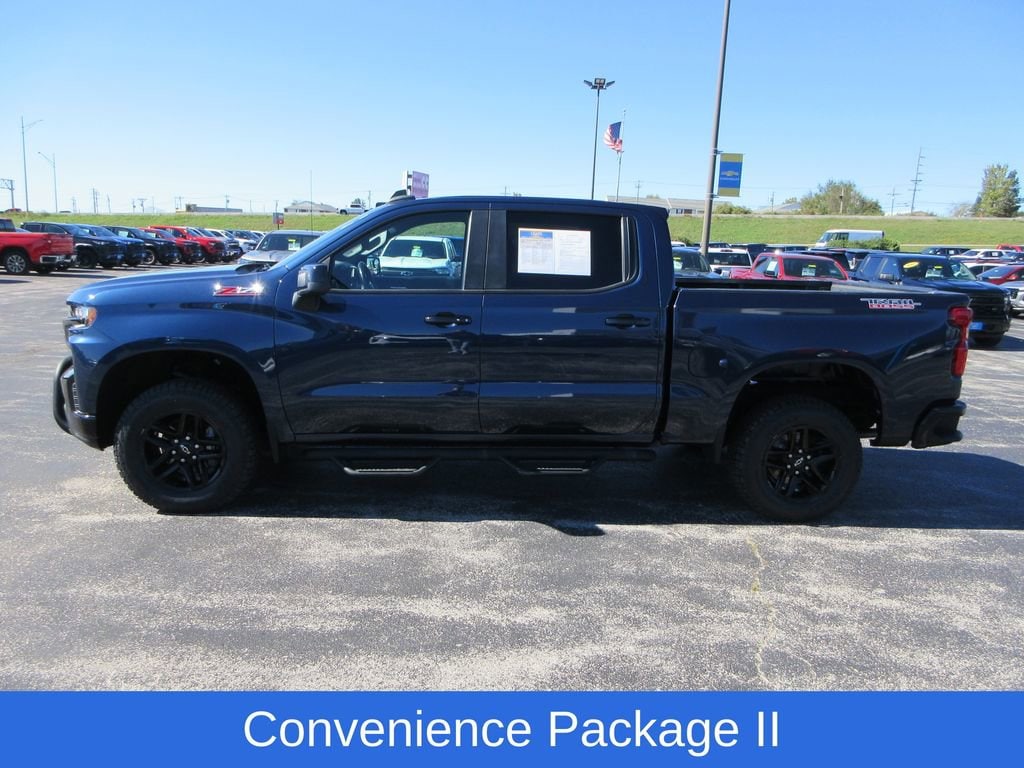 Remote Start, Heated Seats, Silverado 1500 LT Trail Boss, 4D Crew Cab, EcoTec3 5.3L V8, 10-Speed Automatic, 4WD, Northsky Blue Metallic, Black Leather, 2 USB Ports, Black Name Plates (LPO), Convenience Package II, Convenience Package w/Buckets Seats, Dark Essentials Package (LPO), Dual-Zone Automatic Climate Control, Floor Mounted Center Console, HD Rear Vision Camera, Heated Driver & Front Outboard Passenger Seats, Heated Steering Wheel, Power Sliding Rear Window w/Rear Defogger, Premium Bose 7-Speaker Sound System, Radio: Chevrolet Infotainment 3 Plus System, Universal Home Remote. Convenience Package II (2 USB Ports, HD Rear Vision Camera, Power Sliding Rear Window w/Rear Defogger, Premium Bose 7-Speaker Sound System, Radio: Chevrolet Infotainment 3 Plus System, Universal Home Remote, 120-Volt Bed Mounted Power Outlet, 120-Volt Instrument Panel Power Outlet, HD Radio, SiriusXM w/360L, and Wireless Phone Projection), Convenience Package w/Buckets Seats (Dual-Zone Automatic Climate Control, Floor Mounted Center Console, Heated Driver & Front Outboard Passenger Seats, Heated Steering Wheel, 10-Way Power Driver Seat w/Lumbar, and Manual Tilt/Telescoping Steering Column), Dark Essentials Package (LPO) (Black Name Plates (LPO)), Leather Package (Leather-Appointed Front Seat Trim), Preferred Equipment Group 2LT (12-Volt Rear Auxiliary Power Outlet, 170 Amp Alternator, 2 USB Ports (First Row), 4.2 Diagonal Color Display Driver Info Center, 4G LTE Wi-Fi Hot Spot Capable, 6-Speaker Audio System, All-Weather Floor Liner (LPO) (AAK), Auto-Locking Rear Differential, Auxiliary External Transmission Oil Cooler, Bluetooth® For Phone, Chevrolet Connected Access Capable, Color-Keyed Carpeting Floor Covering, Compass, Deep-Tinted Glass, Dual Exhaust w/Polished Outlets, Electric Rear-Window Defogger, Electrical Lock Control Steering Column, Electronic Cruise Control, EZ Lift Power Lock & Release Tailgate, Front LED Fog Lamps, High Gloss Black Grille, High Gloss Black Mirror Caps, Keyless Open & Start, Leather Wrapped Steering Wheel, LED Cargo Area Lighting, LED Reflector Headlamps, OnStar & Chevrolet Connected Services Capable, Performance Red Recovery Hooks, Power Door Locks, Power Front Windows w/Driver Express Up/Down, Power Front Windows w/Passenger Express Down, Power Rear Windows w/Express Down, Rear Dual USB Charging-Only Ports, Rear Vision Camera, Remote Vehicle Starter System, SiriusXM Radio, Standard Tailgate, Steering Wheel Audio Controls, and Theft Deterrent System (Unauthorized Entry)), Suspension Package (Heavy-Duty Air Filter and Hill Descent Control), Trailering Package (Hitch Guidance), Up-Level Rear Seat w/Storage Package, Silverado 1500 LT Trail Boss, 4D Crew Cab, EcoTec3 5.3L V8, 10-Speed Automatic, 4WD, Northsky Blue Metallic, Black Leather, 3.23 Rear Axle Ratio, 4-Wheel Disc Brakes, 6 Speakers, ABS brakes, Air Conditioning, Alloy wheels, AM/FM radio: SiriusXM, Apple CarPlay/Android Auto, Automatic temperature control, Black Tailgate CHEVROLET Lettering (LPO), Brake assist, Cloth Seat Trim, Delay-off headlights, Driver door bin, Driver vanity mirror, Dual front impact airbags, Dual front side impact airbags, Electronic Stability Control, Front anti-roll bar, Front Bucket Seats, Front Center Armrest w/Storage, Front dual zone A/C, Front fog lights, Front License Plate Kit, Front reading lights, Front wheel independent suspension, Fully automatic headlights, Heated door mirrors, Heated front seats, Heated steering wheel, Illuminated entry, Integrated Trailer Brake Controller, Low tire pressure warning, Occupant sensing airbag, Off-Road Suspension w/2 Lift, Outside temperature display, Overhead airbag, Overhead console, Panic alarm, Passenger door bin, Passenger vanity mirror, Power door mirrors, Power driver seat, Power steering, Power windows, Premium audio system: Chevrolet Infotainment 3, Radio data system, Radio: Chevrolet Infotainment 3 System, Rear reading lights, Rear