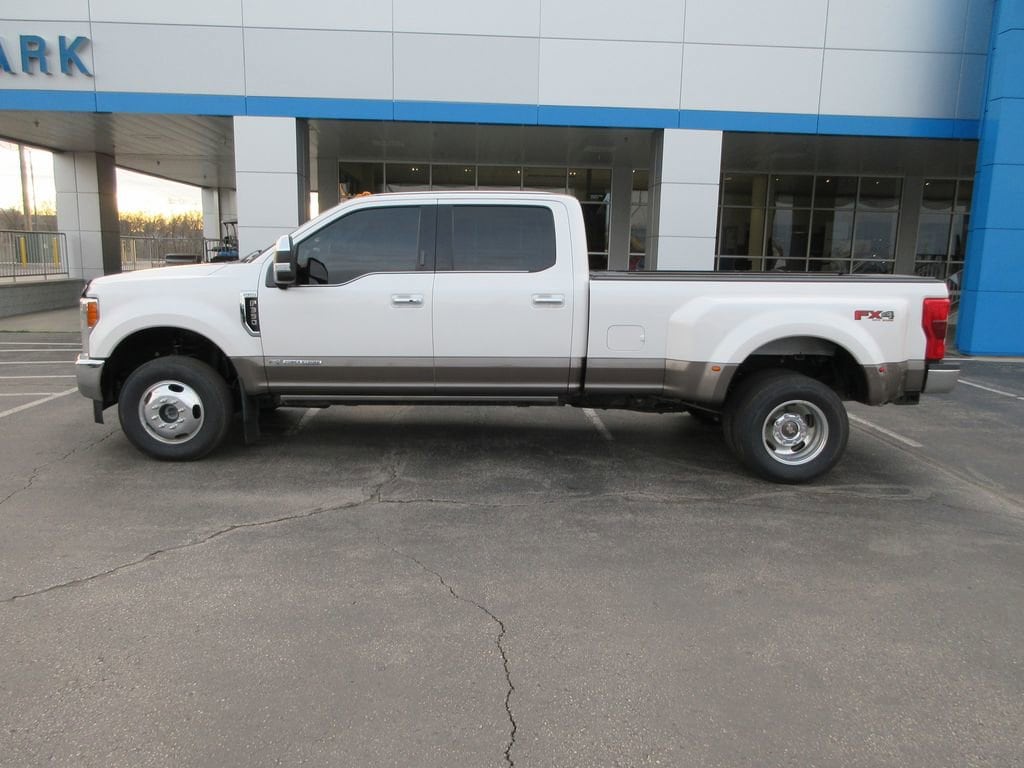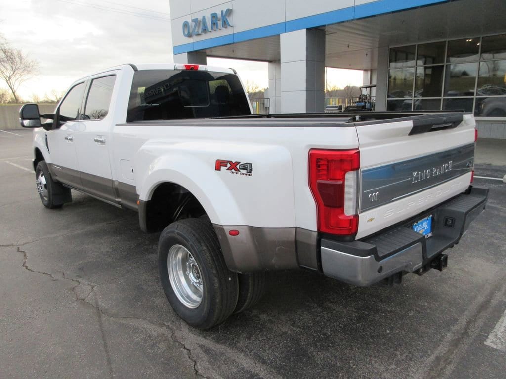 F-350 SuperDuty King Ranch DRW, 4D Crew Cab, Power Stroke 6.7L V8 DI 32V OHV Turbodiesel, TorqShift 6-Speed Automatic, 4WD, White, Front reading lights, Rear step bumper. GVWR: 14,000 lb Payload Package, F-350 SuperDuty King Ranch DRW, 4D Crew Cab, Power Stroke 6.7L V8 DI 32V OHV Turbodiesel, TorqShift 6-Speed Automatic, 4WD, White, Front reading lights, Rear step bumper, 110V/400W Outlet, 17 Forged Polished Aluminum Wheels, 3.55 Axle Ratio, 4-Wheel Disc Brakes, ABS brakes, Air Conditioning, Brake assist, Delay-off headlights, Dual front impact airbags, Dual front side impact airbags, Dual rear wheels, Electronic Stability Control, Exterior Parking Camera Rear, Front anti-roll bar, Fully automatic headlights, Low tire pressure warning, Outside temperature display, Overhead airbag, Overhead console, Passenger vanity mirror, Power steering, Rear anti-roll bar, Rear reading lights, SiriusXM Radio, Split folding rear seat, SYNC 3 Communications & Entertainment System, Tachometer, Telescoping steering wheel, Tilt steering wheel, Traction control, Trip computer, and Variably intermittent wipers. 2018 Ford F-350SD King Ranch DRW 4WD TorqShift 6-Speed Automatic Power Stroke 6.7L V8 DI 32V OHV Turbodiesel Odometer is 78389 miles below market average!