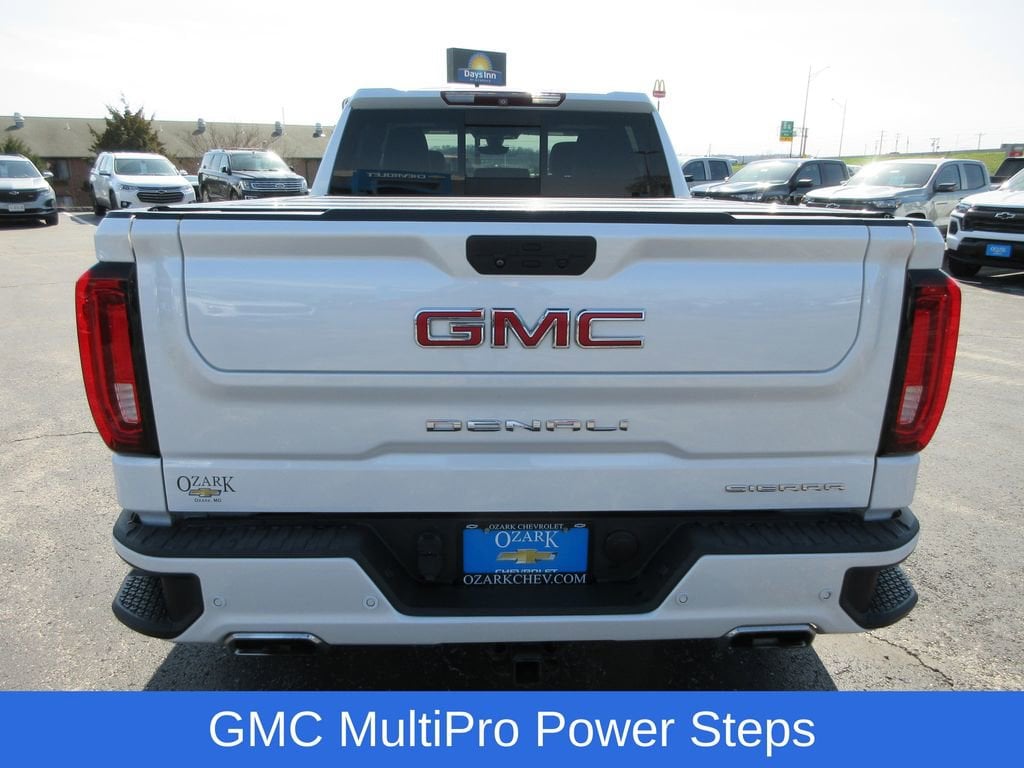 Sierra 1500 Denali, 4D Crew Cab, EcoTec3 6.2L V8, 10-Speed Automatic, 4WD, White Frost Tricoat, Jet Black Leather, Denali Ultimate Package, Driver Alert Package I, Driver Alert Package II, Following Distance Indicator, Forward Collision Alert, Front Pedestrian Braking, GMC MultiPro Power Steps, IntelliBeam Automatic High Beam On/Off, Lane Change Alert w/Side Blind Zone Alert, Lane Keep Assist w/Lane Departure Warning, Navigation System, Perimeter Lighting, Power Sunroof, Rear Camera Mirror, Technology Package, Ultrasonic Front & Rear Park Assist, Wheel Locks (Set of 4) (LPO). Denali Ultimate Package (GMC MultiPro Power Steps, Power Sunroof, Wheel Locks (Set of 4) (LPO), and Trailer Tire Pressure Monitor System), Driver Alert Package I (Lane Change Alert w/Side Blind Zone Alert, Perimeter Lighting, Ultrasonic Front & Rear Park Assist, and Rear Cross Traffic Alert), Driver Alert Package II (Following Distance Indicator, Forward Collision Alert, Front Pedestrian Braking, IntelliBeam Automatic High Beam On/Off, Lane Keep Assist w/Lane Departure Warning, and Low Speed Forward Automatic Braking), Technology Package (Rear Camera Mirror, HD Surround Vision, and Multi-Color 15 Diagonal Head-Up Display), Preferred Equipment Group 5SA (12-Volt Rear Auxiliary Power Outlet, 120-Volt Bed Mounted Power Outlet, 120-Volt Instrument Panel Power Outlet, 170 Amp Alternator, 2 USB Ports, 2 USB Ports (1st Row), Auxiliary External Transmission Oil Cooler, Chrome Assist Steps, Chrome Recovery Hooks, Color-Keyed Carpeting Floor Covering, Compass, Deep-Tinted Glass, Electric Rear-Window Defogger, Electrical Lock Control Steering Column, Floor Mounted Console, GMC 4G LTE, GMC Connected Access, HD Radio, HD Rear Vision Camera, Heated 2nd Row Outboard Seats, Heated Driver & Front Passenger Seating, Heavy-Duty Rear Locking Differential, High-Capacity Air Filter, Hill Descent Control, Hitch Guidance, Hitch Guidance w/Hitch View, In-Vehicle Trailering App, Integrated Trailer Brake Controller, Keyless Open & Start, LED Cargo Area Lighting, Manual Tilt-Wheel & Telescoping Steering Column, OnStar & GMC Connected Services Capable, Power Door Locks, Power Front Passenger Windows w/Express Up/Down, Power Front Windows w/Driver Express Up/Down, Power Rear Windows w/Express Down, Power Sliding Rear Window w/Rear Defogger, Rear Dual USB Charging-Only Ports, Rear Wheelhouse Liners, Remote Vehicle Starter System, Safety Alert Seat, Signature Denali Grille, Spray-On Pickup Bed Liner w/Denali Logo, Steering Wheel Audio Controls, Theft Deterrent System (Unauthorized Entry), Universal Home Remote, Ventilated Driver & Front Passenger Seats, and Wireless Charging), Trailering Package, Sierra 1500 Denali, 4D Crew Cab, EcoTec3 6.2L V8, 10-Speed Automatic, 4WD, White Frost Tricoat, Jet Black Leather, Navigation System, 10-Way Power Driver Seat Adjuster w/Lumbar, 10-Way Power Passenger Seat Adjuster w/Lumbar, 3.23 Rear Axle Ratio, 4-Wheel Disc Brakes, 7 Speakers, ABS brakes, Adaptive Ride Control Suspension, Adaptive suspension, Air Conditioning, Alloy wheels, AM/FM radio: SiriusXM, Apple CarPlay/Android Auto, Auto-dimming door mirrors, Auto-dimming Rear-View mirror, Automatic temperature control, Brake assist, Bumpers: body-color, Delay-off headlights, Driver door bin, Driver Memory, Driver vanity mirror, Dual front impact airbags, Dual front side impact airbags, Electronic Stability Control, Forge Perforated Leather-Appointed Seat Trim, Front anti-roll bar, Front Bucket Seats, Front Center Armrest, Front dual zone A/C, Front fog lights, Front License Plate Kit, Front reading lights, Front wheel independent suspension, Fully automatic headlights, Garage door transmitter, Genuine wood console insert, Genuine wood door panel insert, Heated door mirrors, Heated front seats, Heated rear seats, Heated steering wheel, Illuminated entry, Low tire pressure warning, Memory seat, Occupant sensing airbag, Outside temperature display, Overh