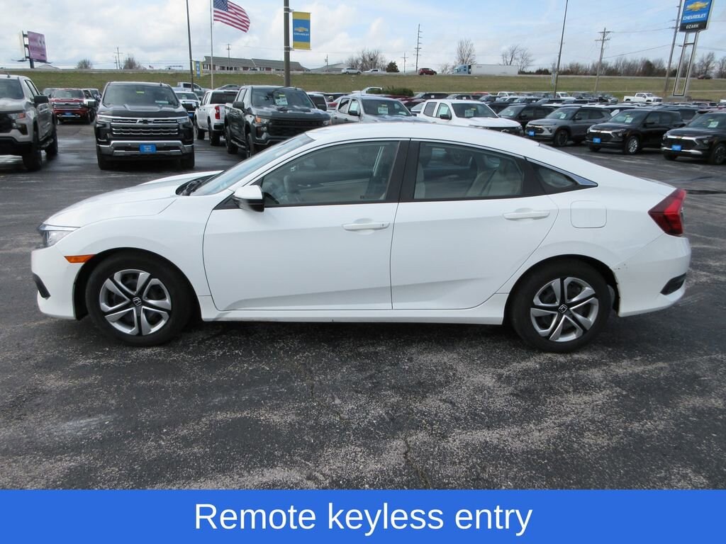 Look at the Miles!, Power Drivers seat, Civic LX, 4D Sedan, 2.0L I4 DOHC 16V i-VTEC, CVT, FWD, White, Black Cloth, Remote keyless entry. Civic LX, 4D Sedan, 2.0L I4 DOHC 16V i-VTEC, CVT, FWD, White, Black Cloth, Remote keyless entry, 16 Wheels w/Full Covers, 4 Speakers, 4-Wheel Disc Brakes, ABS brakes, Air Conditioning, AM/FM radio, Automatic temperature control, Brake assist, Bumpers: body-color, Cloth Seat Trim, Compass, Delay-off headlights, Driver door bin, Driver vanity mirror, Dual front impact airbags, Dual front side impact airbags, Electronic Stability Control, Exterior Parking Camera Rear, Four wheel independent suspension, Front anti-roll bar, Front Bucket Seats, Front Center Armrest, Front reading lights, Fully automatic headlights, Illuminated entry, Low tire pressure warning, Occupant sensing airbag, Outside temperature display, Overhead airbag, Panic alarm, Passenger door bin, Passenger vanity mirror, Power door mirrors, Power steering, Power windows, Radio data system, Radio: 160-Watt AM/FM Audio System, Rear anti-roll bar, Rear window defroster, Reclining Front Bucket Seats, Security system, Speed control, Speed-sensing steering, Steering wheel mounted audio controls, Tachometer, Telescoping steering wheel, Tilt steering wheel, and Traction control. 2018 Honda Civic LX FWD CVT 2.0L I4 DOHC 16V i-VTEC Recent Arrival! Odometer is 36850 miles below market average! 31/40 City/Highway MPG