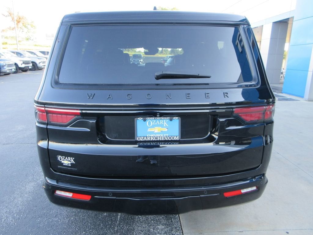 Remote Start, One-Owner, Backup Camera, Leather Seats, Wagoneer Series II, 4D Sport Utility, 3.0L I6, 8-Speed Automatic, 4WD, Diamond Black Crystal Pearlcoat, Black Leather, 3 Panel Sunroof, Heads-Up Display, Heated front seats, Heated steering wheel. Carbide Appearance Package, Convenience Group I (Heads-Up Display, 2nd Row Manual Window Shades, Auto High Beam Headlamp Control, Drowsy Driver Detection, Heated Second Row Seats, Intersection Collision Assist System, P&P Park & Unpark Assist w/Stop System, Side Distance Warning, Surround View Camera System, and Traffic Sign Recognition), Flexible Seating Group (60/40 Power Recline 3rd Row Seat, 7-Passenger Seating, Floor Console w/Cupholder, and Power Tip/Slide Recline 2nd Row Buckets), HD Trailer Tow Package (Heavy-Duty Engine Cooling, Trailer Brake Control, and Trailer Hitch Zoom), Quick Order Package 25F Carbide (3 Panel Sunroof, Adjustable Roof Rail Crossbars, Black Interior Accents, Cargo Cover, Piano Black Exterior Accents, Reversible Carpet/Vinyl Cargo Mat, and Wheels: 20 x 9 Gloss Black Painted Aluminum), Wagoneer Series II, 4D Sport Utility, 3.0L I6, 8-Speed Automatic, 4WD, Diamond Black Crystal Pearlcoat, Black Leather, Heated front seats, Heated steering wheel, 10 Speakers, 3.55 Rear Axle Ratio, 3.92 Rear Axle Ratio, 3rd row seats: bench, 4-Wheel Disc Brakes, ABS brakes, Adjustable pedals, Air Conditioning, Alloy wheels, AM/FM radio: SiriusXM with 360L, Anti-whiplash front head restraints, Audio memory, Auto-dimming door mirrors, Auto-dimming Rear-View mirror, Auto-leveling suspension, Automatic temperature control, Brake assist, Bumpers: body-color, Compass, Delay-off headlights, Driver door bin, Driver vanity mirror, Driver's Seat Mounted Armrest, Dual front impact airbags, Dual front side impact airbags, Electronic Stability Control, Emergency communication system: Automatic SOS Call, Exterior Parking Camera Rear, Four wheel independent suspension, Front anti-roll bar, Front Bucket Seats, Front Center Armrest w/Storage, Front dual zone A/C, Front fog lights, Front Passenger Interactive Display, Front reading lights, Fully automatic headlights, Garage door transmitter, Genuine wood console insert, Genuine wood dashboard insert, Genuine wood door panel insert, Heated door mirrors, Illuminated entry, Knee airbag, Leather Trimmed Bucket Seats, Low tire pressure warning, Memory seat, Navigation System, Normal Duty Suspension, Occupant sensing airbag, Outside temperature display, Overhead airbag, Overhead console, Panic alarm, Passenger door bin, Passenger seat mounted armrest, Passenger vanity mirror, Pedal memory, Power adjustable front head restraints, Power door mirrors, Power driver seat, Power Liftgate, Power passenger seat, Power steering, Power windows, Radio data system, Radio: Uconnect 5 Nav w/10.1 Display, Rain sensing wipers, Rear air conditioning, Rear anti-roll bar, Rear dual zone A/C, Rear reading lights, Rear seat center armrest, Rear window defroster, Rear window wiper, Reclining 3rd row seat, Remote keyless entry, Security system, Speed control, Speed-sensing steering, Speed-Sensitive Wipers, Split folding rear seat, Steering wheel memory, Steering wheel mounted audio controls, Tachometer, Telescoping steering wheel, Tilt steering wheel, Traction control, Trip computer, Turn signal indicator mirrors, Variably intermittent wipers, Ventilated front seats, Voltmeter, Wheels: 20 x 9.0 Premium 2 Aluminum, and Wheels: 22 x 9.0 Painted Gloss Black. 2023 Jeep Wagoneer Series II 4WD 8-Speed Automatic 3.0L I6 Recent Arrival!