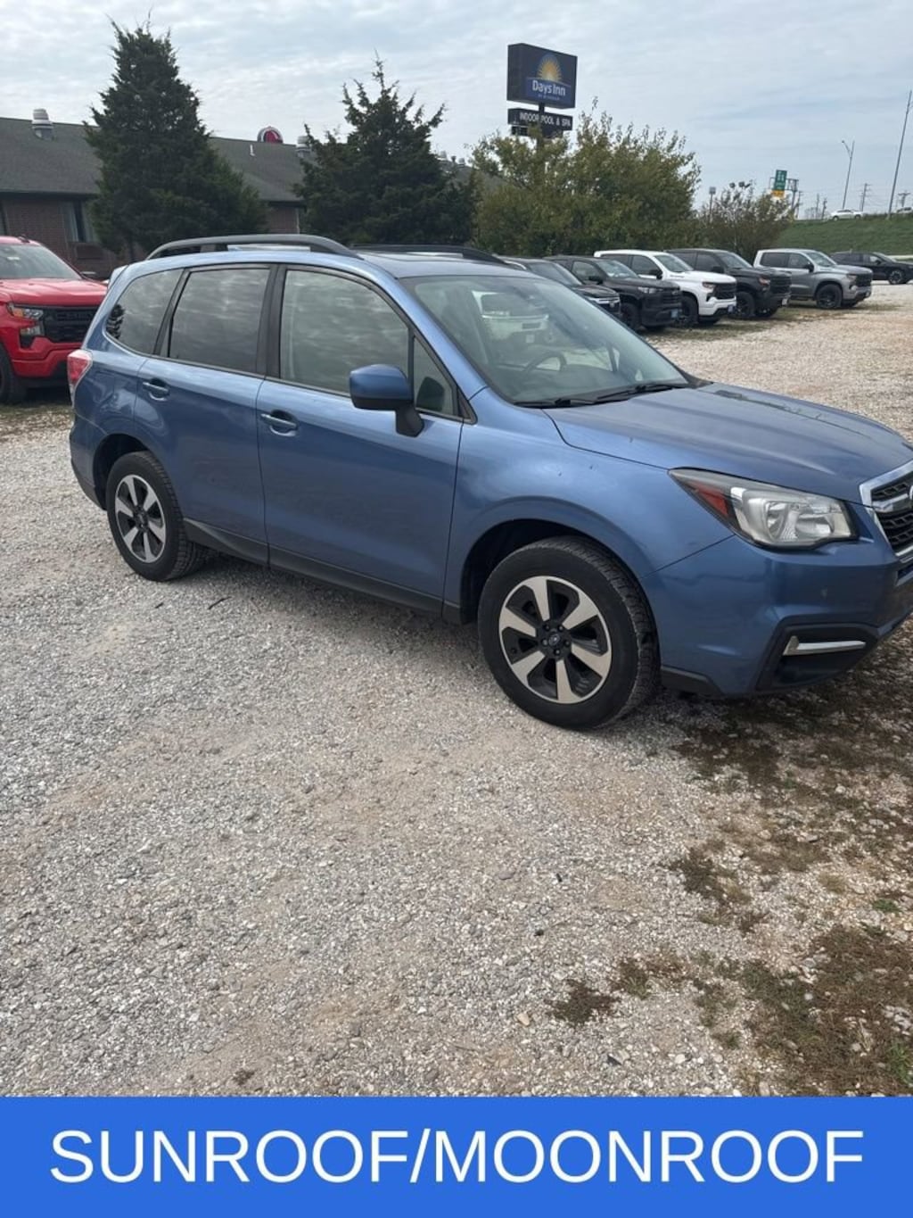 SUNROOF/MOONROOF, Heated Seats, Forester 2.5i Premium, Quartz Blue Pearl. All-Weather Package (Heated Exterior Mirrors, Heated Front Seats, and Windshield Wiper De-Icer), Forester 2.5i Premium, Quartz Blue Pearl, 17 Alloy Wheels, 3.70 Axle Ratio, 4-Wheel Disc Brakes, 6 Speakers, ABS brakes, Air Conditioning, All-Weather Floor Mats, Alloy wheels, AM/FM radio: SiriusXM, Auto-Dimming Mirror w/Compass (DISC), Automatic temperature control, Brake assist, Bumpers: body-color, Cargo Cover - Manual Rear Gate, Cargo Tray, CD player, Cloth Upholstery, Driver door bin, Driver vanity mirror, Dual front impact airbags, Dual front side impact airbags, Electronic Stability Control, Emergency communication system: STARLINK, Exterior Parking Camera Rear, Four wheel independent suspension, Front anti-roll bar, Front Bucket Seats, Front Center Armrest, Front reading lights, Illuminated entry, Knee airbag, Low tire pressure warning, Occupant sensing airbag, Outside temperature display, Overhead airbag, Overhead console, Panic alarm, Passenger door bin, Passenger vanity mirror, Power door mirrors, Power driver seat, Power moonroof, Power steering, Power windows, Radio data system, Radio: Subaru Starlink 7.0 Multimedia Plus System, Rear anti-roll bar, Rear seat center armrest, Rear window defroster, Rear window wiper, Remote keyless entry, Roof rack: rails only, Security system, Speed control, Split folding rear seat, Spoiler, Steering wheel mounted audio controls, Tachometer, Telescoping steering wheel, Tilt steering wheel, Traction control, Trip computer, Variably intermittent wipers, and Wheel Locks - Alloy Wheels. 2017 Subaru Forester 2.5i Premium AWD Lineartronic CVT 2.5L 4-Cylinder DOHC 16V VVT Recent Arrival! 26/32 City/Highway MPG