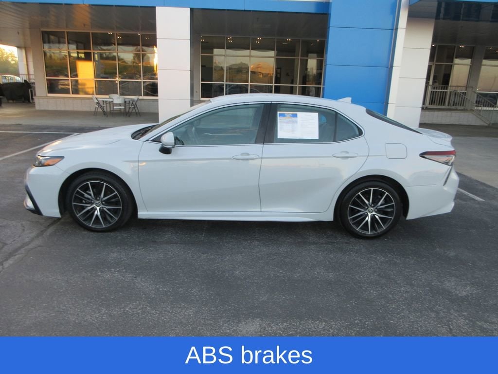 Backup Camera, 4D Sedan, 2.5L I4 DOHC 16V, 8-Speed Automatic, FWD. 4D Sedan, 2.5L I4 DOHC 16V, 8-Speed Automatic, FWD, 4-Wheel Disc Brakes, 6 Speakers, ABS brakes, Air Conditioning, Alloy wheels, AM/FM radio: SiriusXM, Apple CarPlay/Android Auto, Auto High-beam Headlights, Automatic temperature control, Brake assist, Bumpers: body-color, Delay-off headlights, Driver door bin, Driver vanity mirror, Dual front impact airbags, Dual front side impact airbags, Electronic Stability Control, Emergency communication system: Safety Connect (1-year trial), Exterior Parking Camera Rear, Four wheel independent suspension, Front anti-roll bar, Front Bucket Seats, Front Center Armrest, Front dual zone A/C, Front reading lights, Fully automatic headlights, Heated door mirrors, Illuminated entry, Knee airbag, Leather steering wheel, Low tire pressure warning, Occupant sensing airbag, Outside temperature display, Overhead airbag, Overhead console, Panic alarm, Passenger door bin, Passenger vanity mirror, Power door mirrors, Power driver seat, Power steering, Power windows, Radio data system, Radio: Audio, Rear anti-roll bar, Rear seat center armrest, Rear side impact airbag, Rear window defroster, Remote keyless entry, Security system, Speed control, Speed-sensing steering, Split folding rear seat, Spoiler, Sport SofTex Seat Trim w/Fabric Inserts, Steering wheel mounted audio controls, Tachometer, Telescoping steering wheel, Tilt steering wheel, Traction control, Trip computer, Turn signal indicator mirrors, and Variably intermittent wipers. 2023 Toyota Camry FWD 8-Speed Automatic 2.5L I4 DOHC 16V Recent Arrival! 28/39 City/Highway MPG