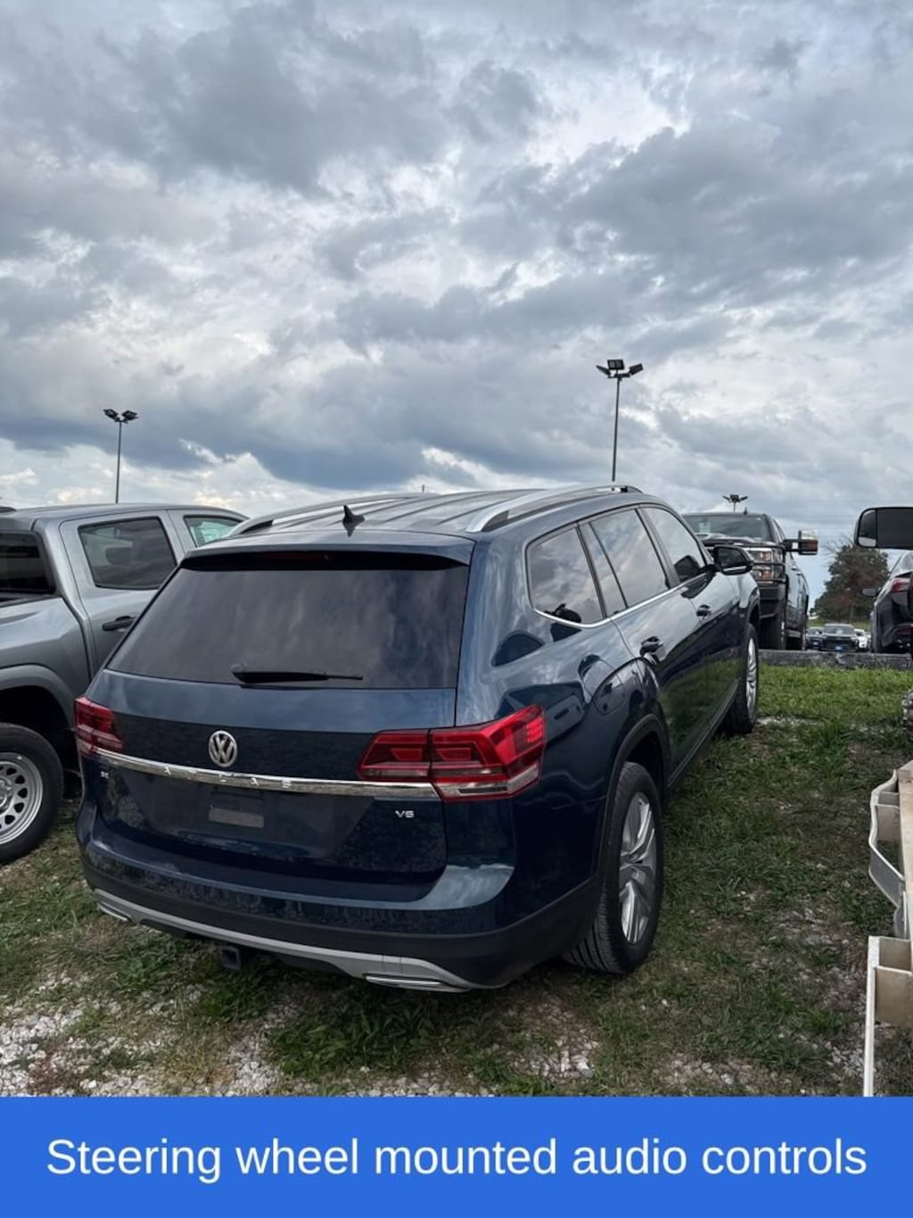 Atlas 3.6L V6 SE w/Technology, 4D Sport Utility, 3.6L VR6, 8-Speed Automatic with Tiptronic, FWD, Blue. Atlas 3.6L V6 SE w/Technology, 4D Sport Utility, 3.6L VR6, 8-Speed Automatic with Tiptronic, FWD, Blue, 18 5-Spoke Wheels, 3.60 Axle Ratio, 3rd row seats: split-bench, 4-Wheel Disc Brakes, 8 Speakers, ABS brakes, Active Blind Spot Monitor, Air Conditioning, Alloy wheels, AM/FM radio: SiriusXM, Auto-dimming Rear-View mirror, Automatic temperature control, Brake assist, Bumpers: body-color, Compass, Delay-off headlights, Driver door bin, Driver vanity mirror, Dual front impact airbags, Dual front side impact airbags, Electronic Stability Control, Emergency communication system: VW Car-Net services (capabilities require enrollment or subscription), Exterior Parking Camera Rear, Forward collision: FCW w/Autonomous Emergency Braking mitigation, Four wheel independent suspension, Front anti-roll bar, Front Bucket Seats, Front Center Armrest, Front dual zone A/C, Front fog lights, Front reading lights, Heated Comfort Front Bucket Seats, Heated door mirrors, Heated front seats, Illuminated entry, Low tire pressure warning, Occupant sensing airbag, Outside temperature display, Overhead airbag, Overhead console, Panic alarm, Passenger door bin, Passenger vanity mirror, Power door mirrors, Power driver seat, Power Liftgate, Power steering, Power windows, Radio data system, Radio: Composition Media 8.0 Touchscreen, Rain sensing wipers, Rear air conditioning, Rear anti-roll bar, Rear reading lights, Rear seat center armrest, Rear window defroster, Rear window wiper, Remote CD player, Remote keyless entry, Roof rack: rails only, Security system, Speed control, Speed-sensing steering, Split folding rear seat, Spoiler, Standard Suspension, Steering wheel mounted audio controls, Tachometer, Telescoping steering wheel, Tilt steering wheel, Traction control, Trip computer, Turn signal indicator mirrors, V-Tex Leatherette Seating Surfaces, and Variably intermittent wipers. 2019 Volkswagen Atlas 3.6L V6 SE w/Technology FWD 8-Speed Automatic with Tiptronic 3.6L VR6 Recent Arrival!